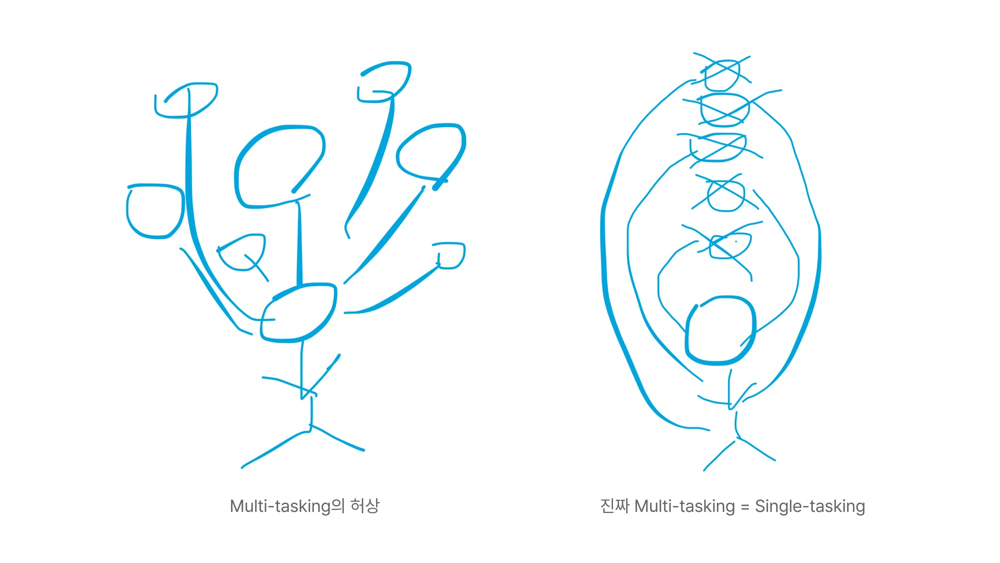 저는 The One thing을 읽은 이후로 한 번에 하나씩 집중하며 일을 처리하는 Single-tasking의 철학을 믿어왔습니다. 그러나 창업 이후 PM, 마케팅, 행정, HR, 비즈니스 등 담당하는 업무들이 전보다 훨씬 많아지면서 막연하게 창업가는 다양한 업무를 동시에 빨리 처리하는 Multi-tasking 해야만 일을 잘하는 거라고 착각을 했었습니다.